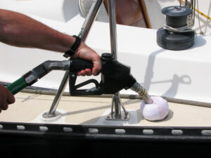 If you sometimes seem to accidentally get a little fuel in the water during refueling, try some different ways to refuel, such as always having an absorbent pad, fuel nozzle absorbent “donut” or “bib” (to soak up back splashes) before you start the pump. Learn – by listening to changing sound coming from the fuel vent – when your fuel tank is nearly full, then stop refueling. It’s ok to leave a little air at the top of the tank. Ninety percent full is best and will help to prevent a rough sea or expansion from causing any fuel to exit the vent. Fueling basics, including smart refueling tips, can be found at BoatUS.org/clean-boating/fueling.