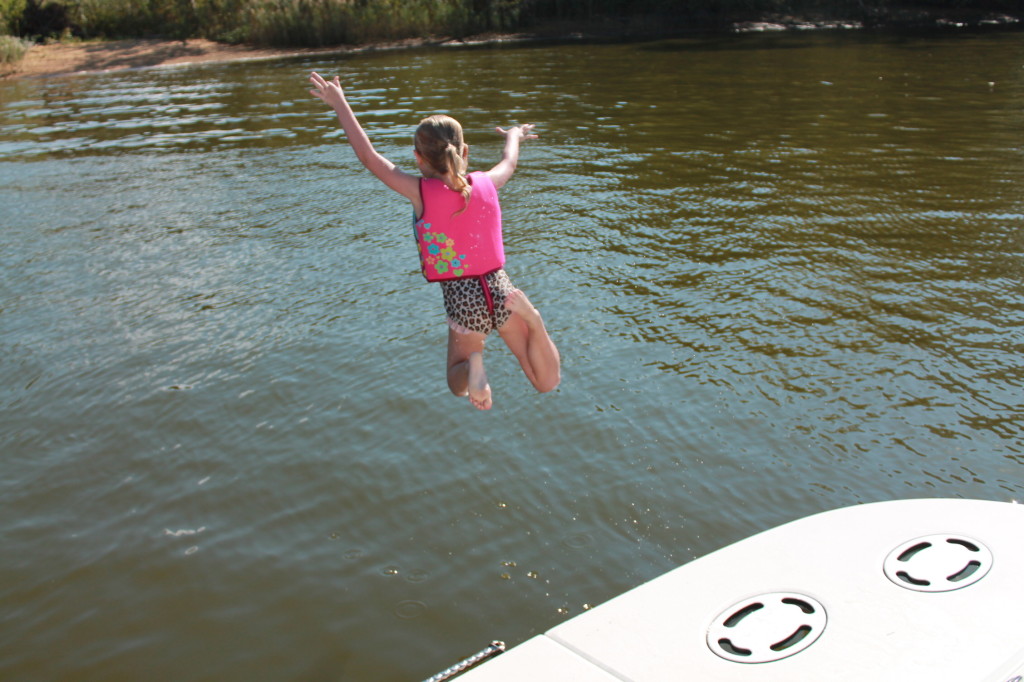 Last summer my oldest daughter finally got enough confidence to make the leap from our boat’s swim platform into the river. And once she learned how to do it there was no stopping her (except the unfortunate, yet inevitable, end to the summer).